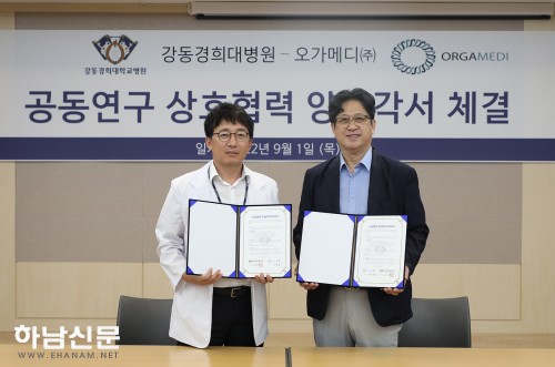 강동경희대학교병원(원장 김성완)이 의료기기 제조 기업인 ㈜오가메디와 임상연구 업무협약을 체결했다. 이번 협약을 통해 강동경희대학교병원과 ㈜오가메디는 △의료기기 개발 협업 추진 및 효과성 검증 △협업 분야의 발굴 및 진행 △의료 및 보건 관련 학술과 기술정보 교류 등을 진행할 예정이다.