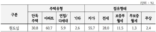 표1) 하남시 주택 유형과 점유형태 (2040 하남시 도시기본계획 )