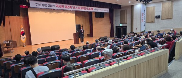 지난 4월25일(금) 하남농협 신용본점 6층 대강당에서 하남시 창우동 부영아파트의 재건축추진사업 주민설명회가 열렸다. 부영아파트는 지난해 2024년12월9일자로 사용승인을 받은 지 만30년이 지나면서 인근 은행아파트 신안아파트와 함께 재건축 요건이 충족되었다. 얼마 전 정부와 서울시는 1기신도시 재건축사업을 지원하기위해 용적률을 높여주고 대단위 아파트 건설을 유도하기 위한 노후계획도시정비기본계획 및 역세권 재건축 지원 계획을 발표했었다. 하남시의 경우도 1기신도시의 기준으로 노후계획도시정비기본계획의 용적률을 적용해야 사업성 있는 것으로 나타났다.
